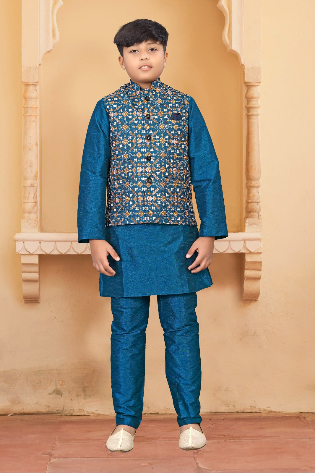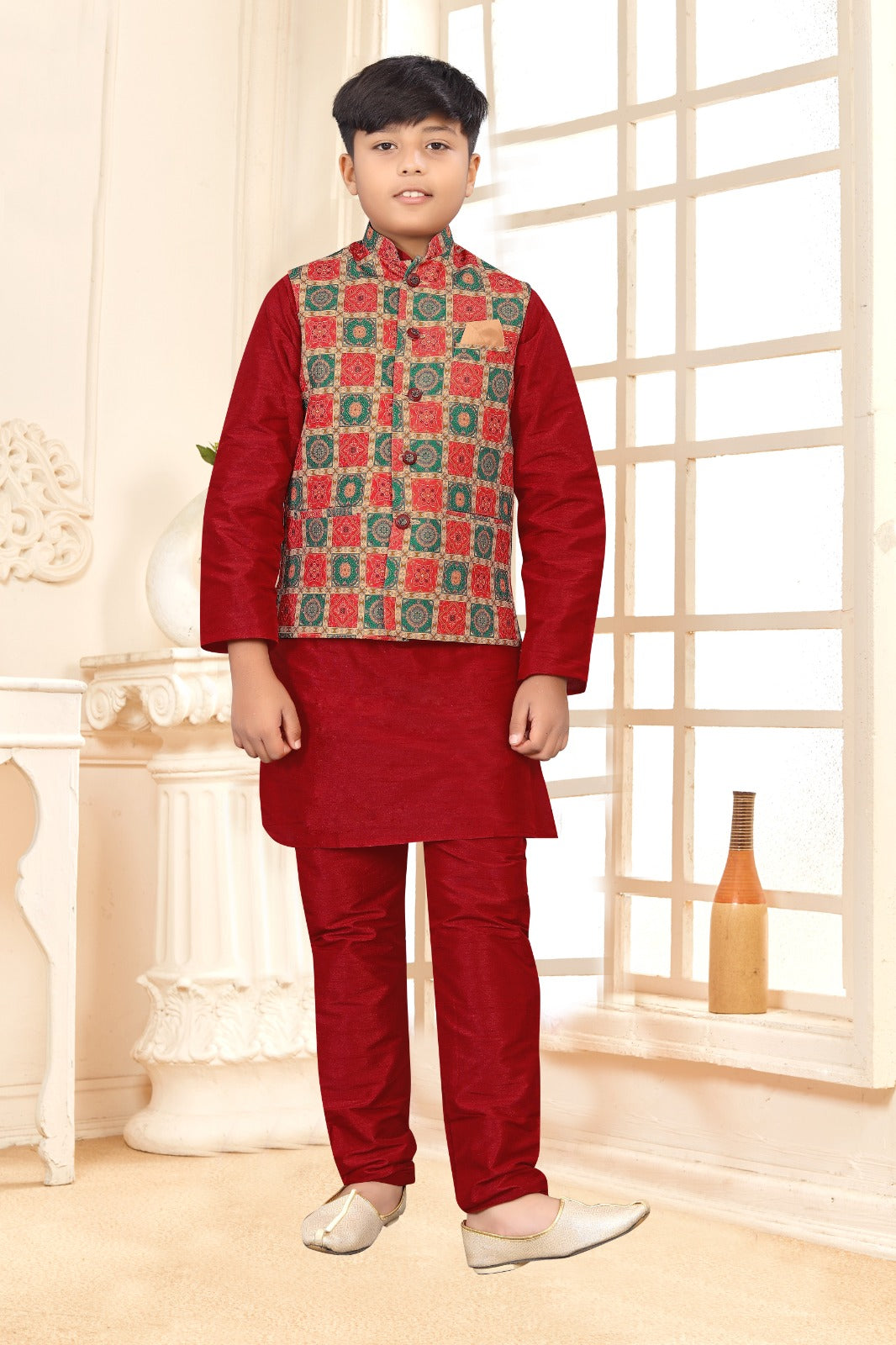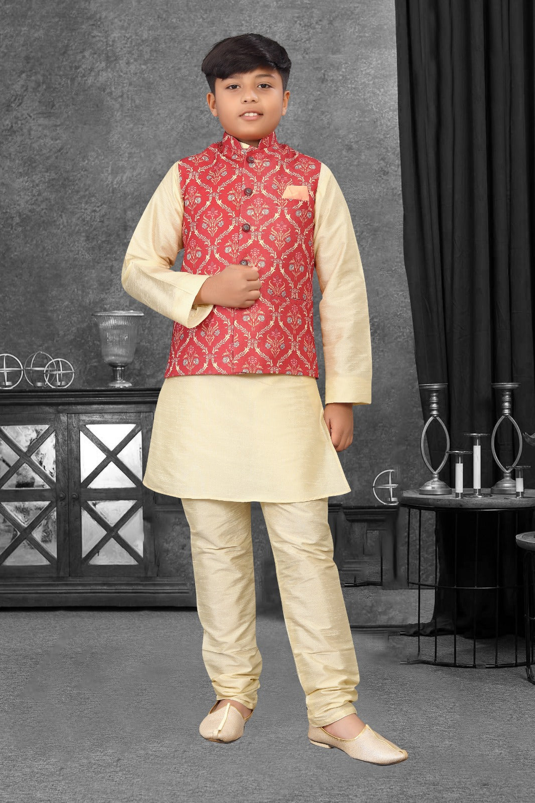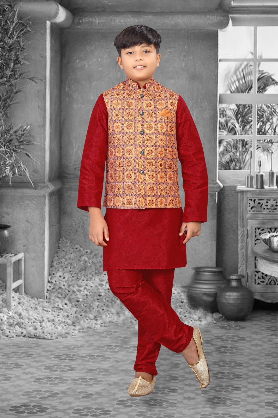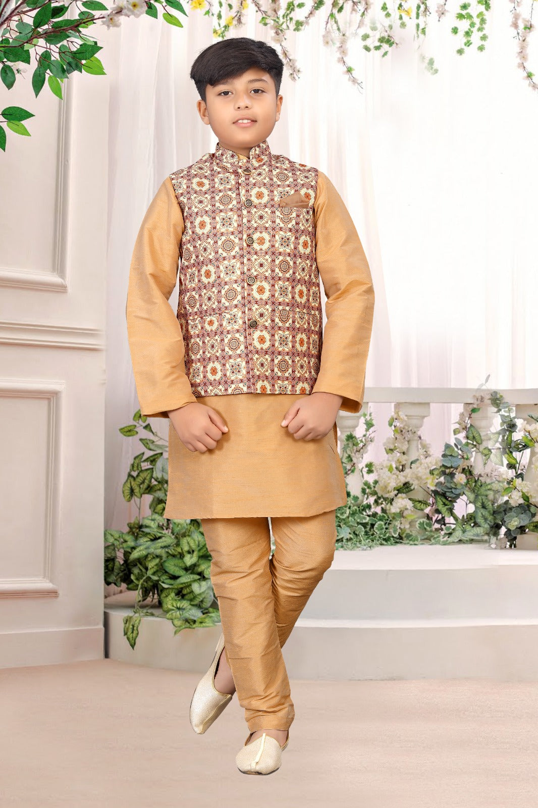 Kid's Koti -2 Kurta Pyjama_ Nehru Fabric- _Jute Printed_ Kurta Fabric - _Silk_