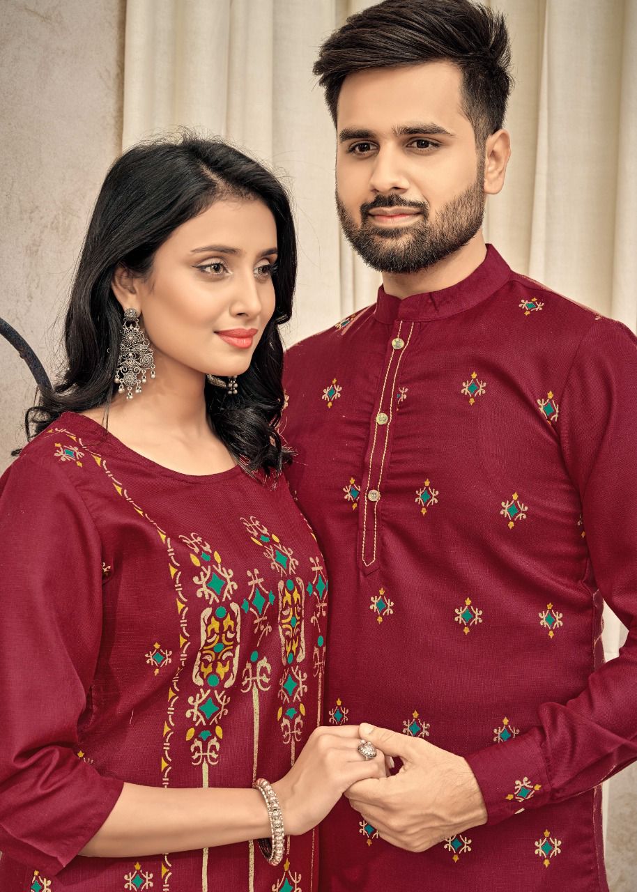 Ready to wear 100% Cotton Dark read color couple kurtis