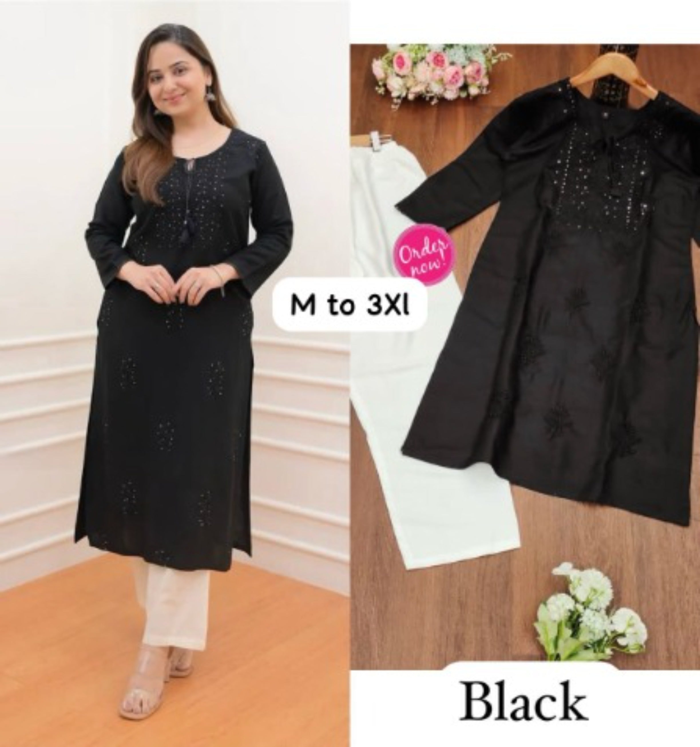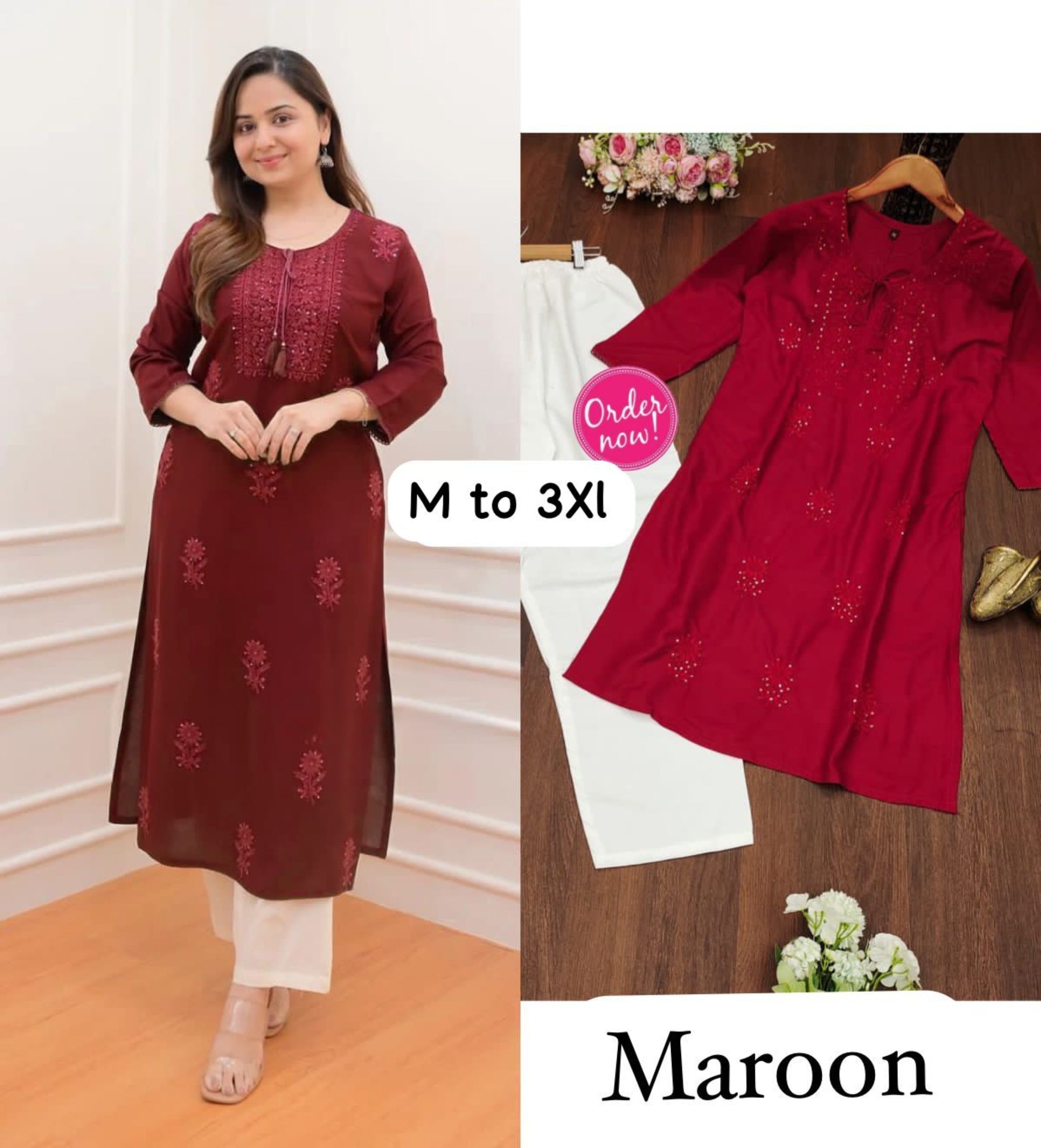 Beautiful Designs With Concept Of Sicvance Chainstitch Embroidery Work And In Rayon Cotton Pent. Print....🪡